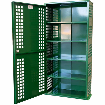 All Class 2 Aerosol Cages are compliant with relevant Australian Standards, featuring natural ventilation, quality sheet steel construction and padlockable doors. The gas cages also feature the applicable dangerous goods signage and hazard signage, as well as an aerosols only sign.