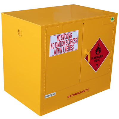 SC100The SC100 is an indoor Flammable Liquid Storage Cabinet designed to store up to 100 litres of Class 3 Flammable Liquids. This innovative under-bench storage solution offers protection against spills and flammable vapours with a compliant spill containment sump, perforated shelving for airflow, and flash arrestors and vent openings to suit a mechanical ventilation system.