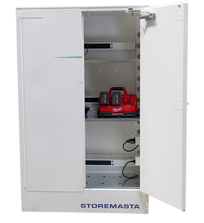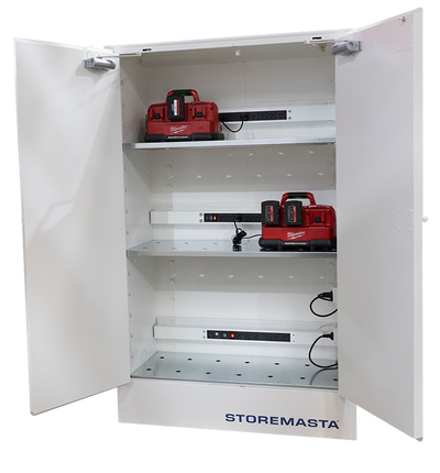 500266Storemasta's Australian-made 18 Outlet Battery Charging Cabinet is an innovative storage solution for workplaces that rely on lithium-ion batteries. Specifically designed to keep Li-ion batteries in a cool, dry and secure environment, the cabinet offers a range of features to reduce battery fire risk.