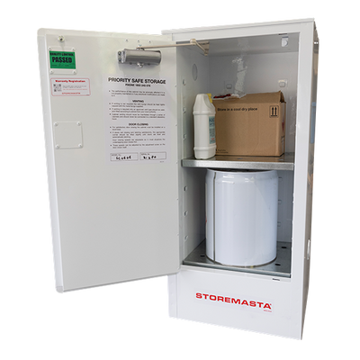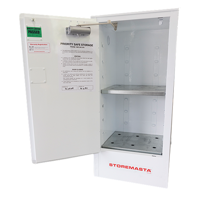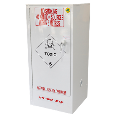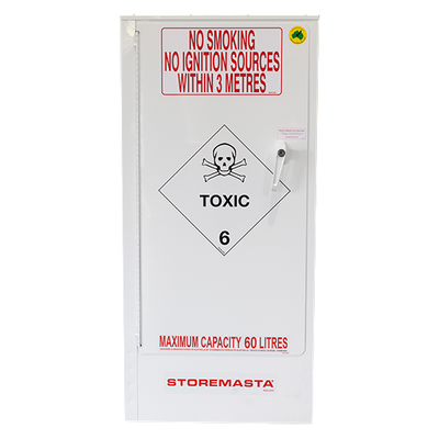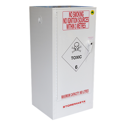 Our compliant storage cabinet for toxic substances offers a 60 litre capacity and features Storemasta's patented SAFE-T-CLOSE© sequential closing system.