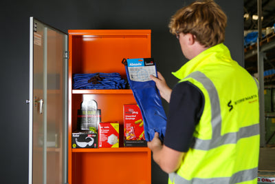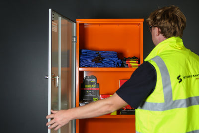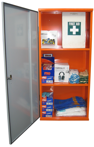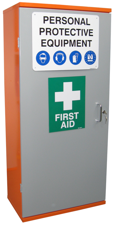 Features of the SPP2 include: heavy duty sheet steel construction; bright orange HI-VIS powder coat finish; 3 x storage levels; key lockable. The unit arrives complete with safety signage fitted to the exterior.