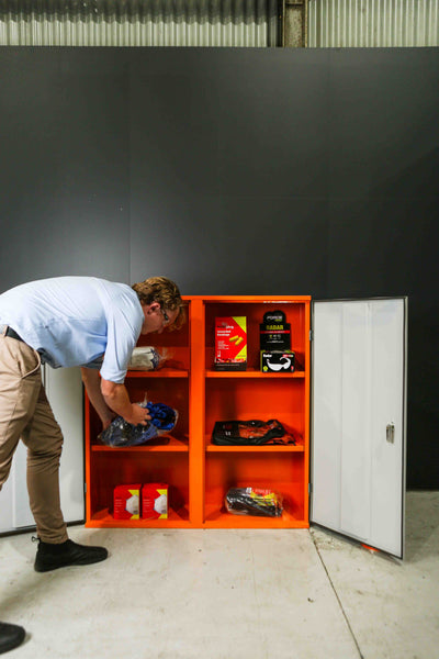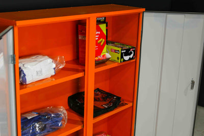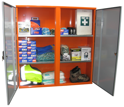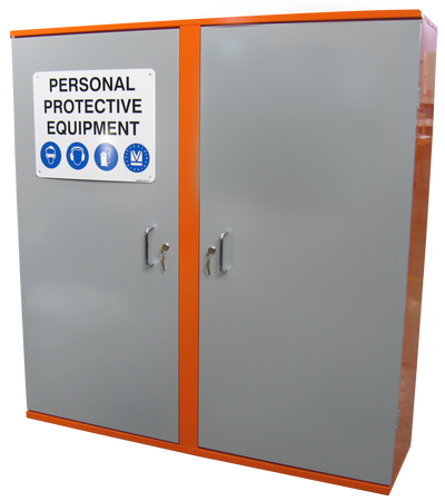 The SPP3 is a double-door PPE storage cabinet easily identified by the bright orange HI-VIS powder coat finish. Now you can keep personal protective equipment (PPE), protective clothing, and uniforms safe from dust, vermin, and theft in this fully lockable cabinet.